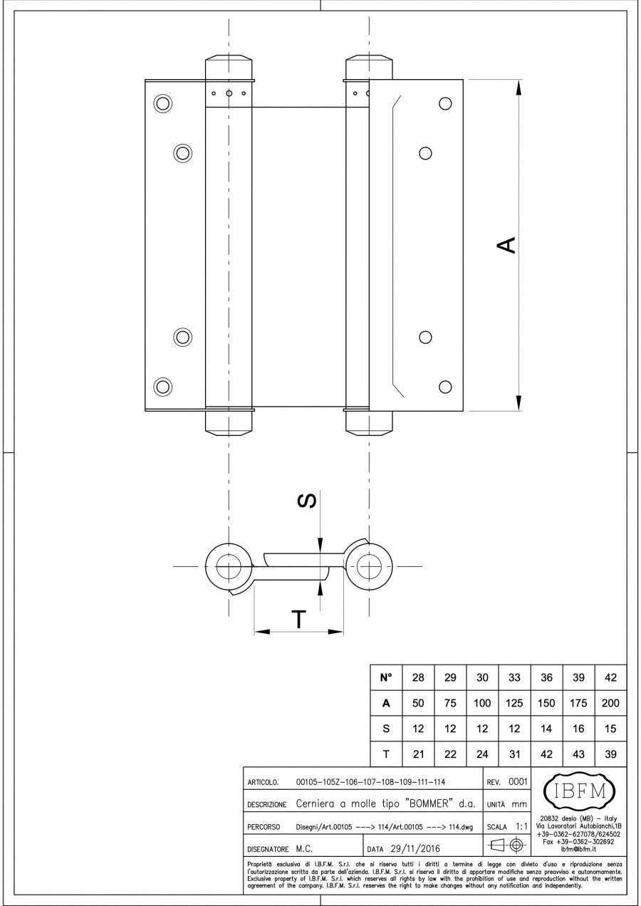 Double acting hinges to be installed on wooden openings, half doors and doors. These hinges allow the opening of the door leaf in both direction: inward and outward in order to simplify the passage of people or things. They also assure the closing of the door after the passage.